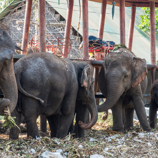 There are a lot of captive elephants in Ayutthaya. Many people go to the Ayutthaya Elephant Palace & Royal Kraal adjacent to one of the historical parks to get close to elephants, feed them and go for rides around the ruins. Not only is it awful how these creatures are chained up most of the time available as interactive displays for people, but I've read that what goes on behind the scenes to train them to be so docile is still quite brutal and cruel. These beautiful, elegant, smart and sentient creatures have very little natural habitat left in Thailand because of logging, though the government has taken steps to protect the remaining herds and forests. It is estimated that there are only 3,000 elephants remaining in the wild in Thailand, down from estimates of 100,000 in the early 1900's. There's a related elephant kraal nearby called Elephant Stay, where there are many elephants, including babies. Their website says this is a home for retired working elephants and elephants that "don't want to work." Elephant Stay allows "voluntourists" to stay for a fee for a few weeks or more to help care for the herd, and the money goes to supporting the ongoing housing, feeding and care for the herd. As with the others, most are chained up and while they appear to be reasonably well cared for there, they are captive and I couldn't help but feel awful for what their lives have become. I've heard there are a few sanctuaries elsewhere in Thailand where the elephants have much more freedom , and will hopefully get to those in the future.